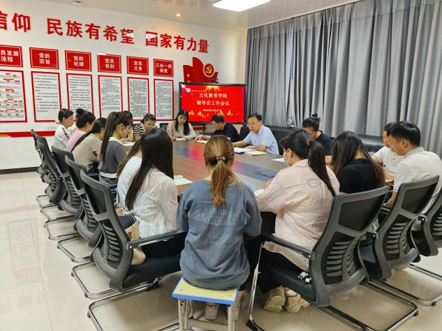 为进一步提升辅导员的工作效率,确保学院各项工作顺利开展,5月27日,文化教育学院在五区党员活动室召开辅导员工作会议。beat365官网党总支书记展贤东、副院长于慧娟、学管办主任普俊以及全体辅导员参加此次会议。会议由党总支书记展贤东主持。