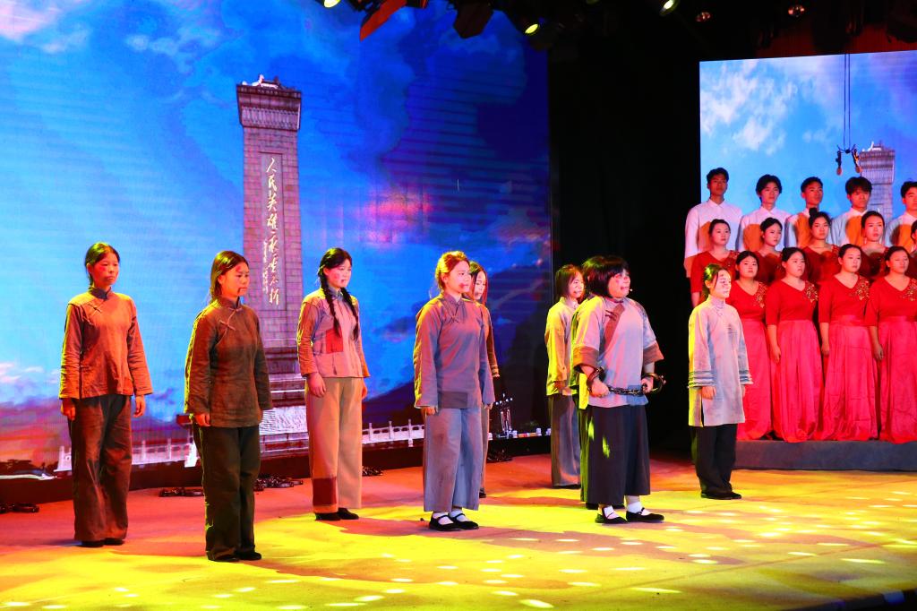 本次参赛作品《巾帼英雄》聚焦抗日民族英雄赵一曼的光辉一生,以诵读与舞台表演相结合的形式,生动再现了她为国为民的热血征程。剧目循着时间脉络铺陈展开:从她主动投身抗日救亡运动,辞别幼子奔赴东北抗日游击战场,带领战士们在林海雪原间与日寇展开艰苦卓绝的斗争;到不幸被俘后,面对日寇的严刑拷打与威逼利诱,始终坚贞不屈,严守党的秘密,用钢铁般的意志诠释共产党人的初心与信仰;再到生命的最后时刻,她写下遗书,字字句句饱含对儿子的思念与对革命事业的坚定信念,最终高唱《国际歌》从容就义。