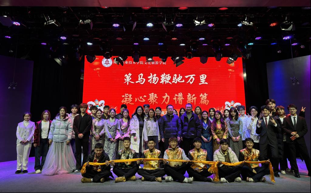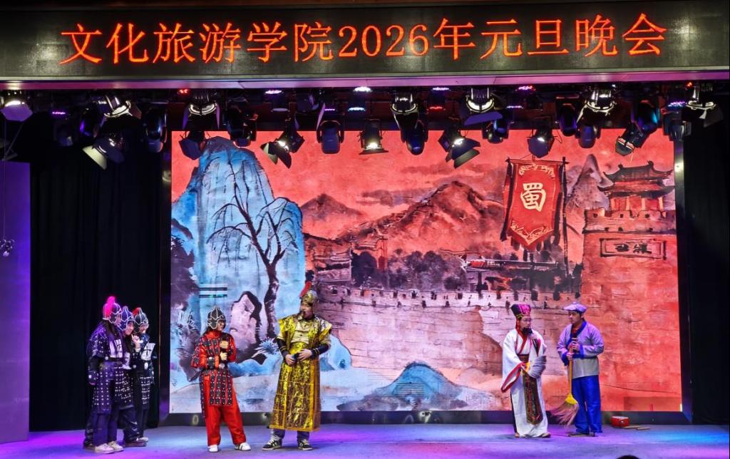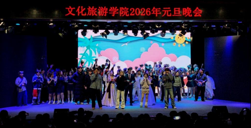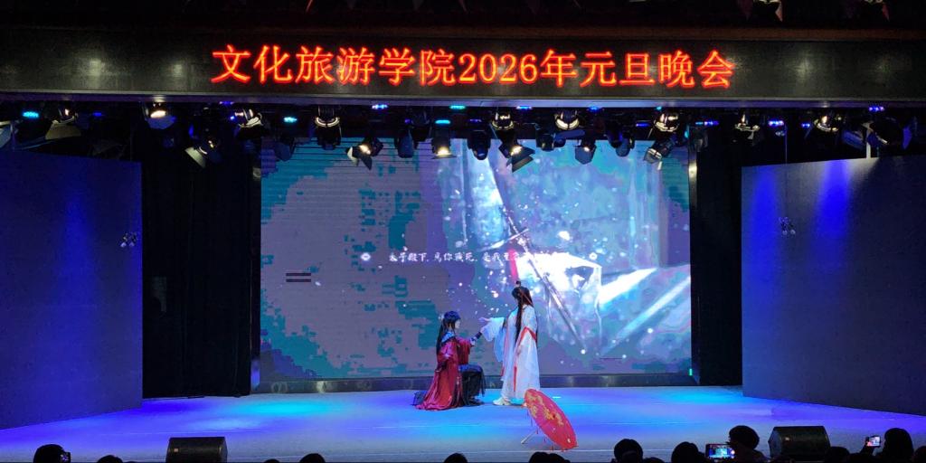 晚会现场气氛热烈,暖意融融。歌舞、话剧、小品、武术表演等节目轮番登场,形式多样、精彩纷呈。同学们用灵动的舞姿展现青春风采,用嘹亮的歌声传递新年喜悦,幽默的小品引得现场笑声不断,热情奔放的民族舞蹈抒发对学院与未来的美好期许。舞台上灯光璀璨,台下掌声雷动,整场晚会洋溢着欢乐、温馨、奋进的氛围,充分展现了文旅学子朝气蓬勃、积极向上的精神风貌。