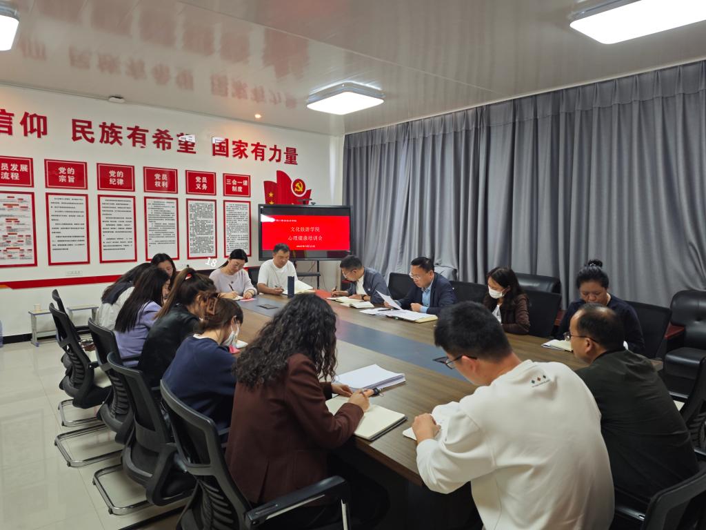 为进一步提升学生心理健康教育工作实效,助力学生健康成长,2025年9月18日在五区党员活动室召开心理健康培训会,学院党总支书记展贤东,院长史丽珍,副院长于慧娟、李炯,学管办主任普俊,教务办主任马淼,综合办主任石永丽及24、25级全体辅导员参会。