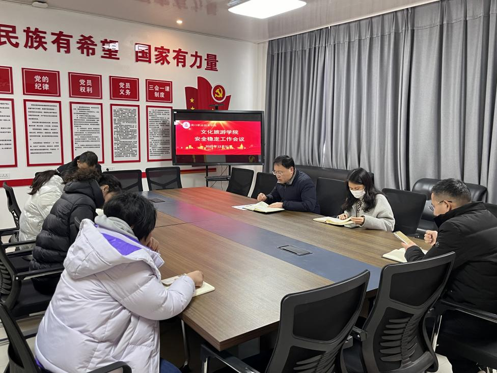 会上,展贤东首先传达了学校安全工作会议精神和元旦假期工作要求,并结合学院工作实际,就做好假期安全稳定工作提出要求:一是提高思想认识,压实安全责任。安全稳定是学院发展的基石,元旦假期师生流动大、风险隐患多。要严格落实“一岗双责”,明确责任分工,将安全责任细化到岗、落实到人。二是聚焦重点领域,抓实隐患排查。要聚焦师生出行安全、实训场地安全、校园舆情安全等重点领域,开展全覆盖、无死角的安全隐患排查。加强对学生的安全教育,提醒师生注意交通、消防、反诈等安全事项,精准掌握留校、离校学生动态,关心关注特殊重点人群。三是强化应急处置,确保师生安全。按照学校要求,制订学院元旦假期应急处突工作预案,严格落实值班值守制度,做好值班巡查,畅通信息报送渠道。值班人员要坚守岗位、履职尽责,保持通讯畅通,一旦发生突发事件,要第一时间响应、第一时间处置、第一时间上报,做到反应迅速、处置得当,最大限度降低风险隐患,确保学院师生度过一个平安祥和的元旦假期。